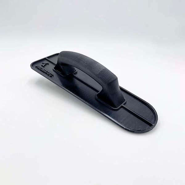 Taloche en PET (polyethylene terephthalate) développée spécifiquement et fabriquée par PROMATEC pour une application optimale des mortiers époxy.